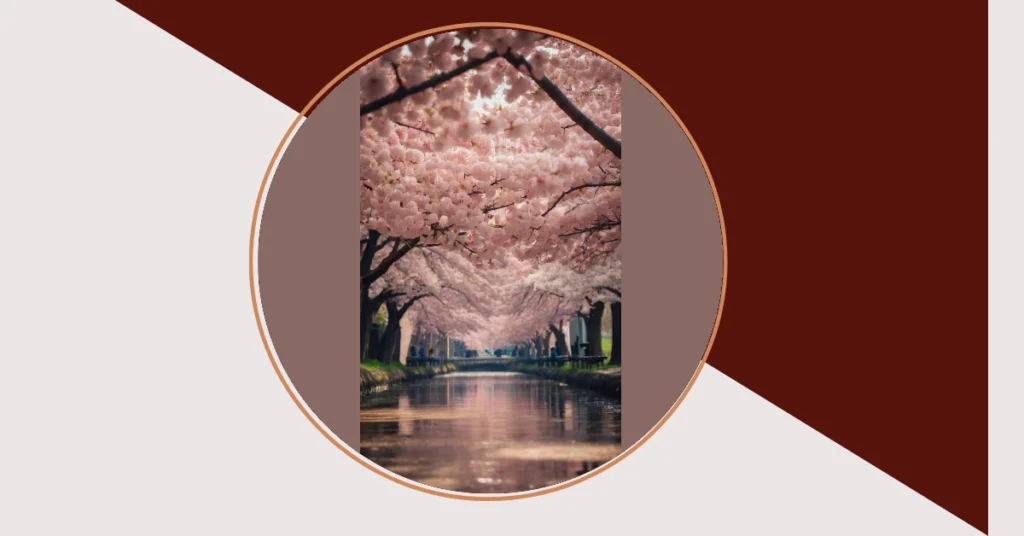 Wouldn’t it be super cool to paddle around in a little boat on that water, surrounded by falling cherry blossom petals? It’s basically like living in a romantic movie, except instead of awkward flirting, you can just chill and admire the view. Plus, imagine how good that air smells – forget perfume, blossom air is the new must-have fragrance!