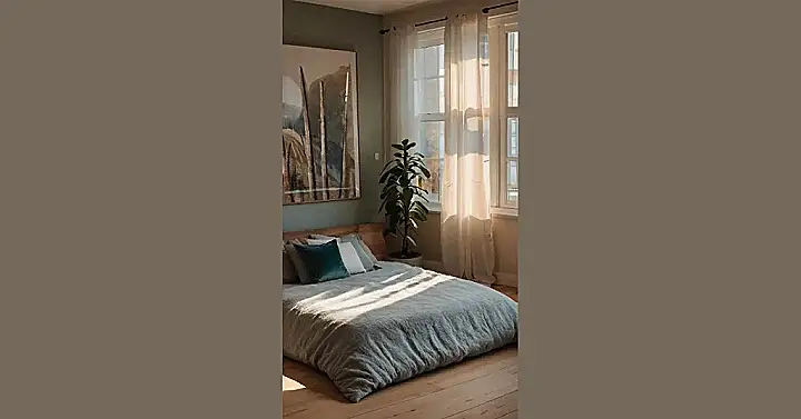 Whoa, check out this chill bedroom vibe! It’s like someone took all the good parts of a nap and turned them into a room. The sunlight streaming through those sheer curtains is begging for a lazy afternoon. Plus, that plant is probably judging our current messy rooms, telling us to level up!