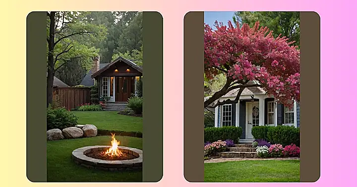 This picture perfectly captures the relaxed feeling of a Canadian home garden. It’s all about that blend of nature and comfort; the lush green grass, the surrounding trees creating a natural haven, and the warm inviting firepit, perfect for family gatherings and storytelling under the stars. It’s the kind of place where memories are made, from summer barbeques to spooky autumn nights – truly a Canadian paradise for any grade 9 student (or anyone, really!).