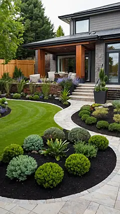 Seriously, this garden is goals! I bet whoever designed this put a lot of thought into every detail, from the perfectly placed plants to the chic stone pathway. It’s the kind of space that makes you want to grab a cup of tea, a good book, and just chill. Imagine how amazing this would look at night with some fairy lights! And who needs a fancy backyard when you have a home front garden this fabulous?