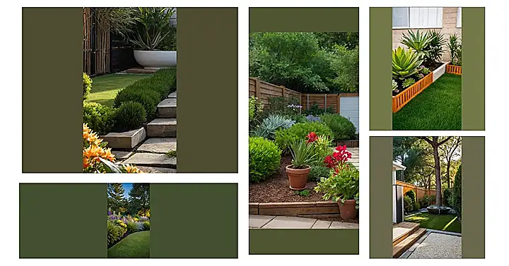 This picture shows a super cool home front garden! Imagine strolling down this path, the sun warming your face as you head to your awesome house. It’s like a secret garden pathway, all peaceful and calming. Those perfectly trimmed trees look like they’re guarding the entrance to a miniature kingdom, don’t they? The combination of wood and stone is just the right mix of rustic and modern, like something out of a magazine! It’s proof that even a small space can be transformed into a total chill-out zone.