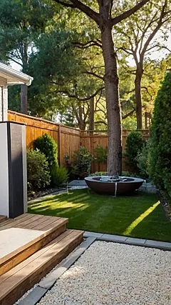 Stepping out your back door, you’re greeted not by a grumpy neighbour, but by your own personal slice of paradise! This backyard oasis is the perfect mix of nature’s chill vibes and carefully planned landscaping. Imagine sipping lemonade on those comfy-looking wooden steps, the gentle sound of a water feature trickling nearby. It’s like having a mini-vacation in your own home front garden, minus the expensive plane tickets and questionable hotel breakfasts.