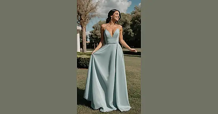 This dreamy, light-blue bridesmaid dress is practically begging to be twirled in! Imagine yourself gliding across a dance floor, feeling like a princess (even if you totally spilled punch on your shoes at the last wedding). This dress is perfect for those who want to look amazing without being too fussy. It’s comfortable, elegant, and seriously photogenic – get ready for your Instagram feed to explode with likes!