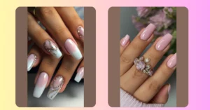 And check out those rings! They’re like the cherry on top of a delicious Christmas sundae. One’s a classic emerald green, and the other is all sparkly diamonds. They’re making these already amazing nails even more dazzling. These are the kind of nails that would make even Santa Claus do a double-take!