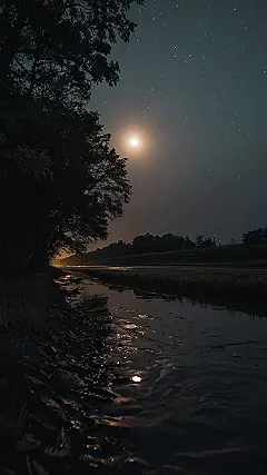 Seriously though, this picture is awesome. The way the moon’s reflection dances on the water is like a secret code only nature knows. It’s a reminder that even when it’s dark, there’s still so much beauty to see if you just take a moment to look up (or, in this case, look at a really cool photo!). It’s almost like the river itself is trying to catch the moon’s light, like a playful game of cosmic tag! It makes you want to grab a blanket, some hot chocolate, and just stare at the magic for hours.