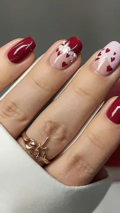 These nails are seriously glam! Imagine rocking these gorgeous burgundy and blush pink shades with delicate gold and sparkly accents on Valentine’s Day. They’re perfect for a romantic dinner date or even just hanging out with friends – because who doesn’t deserve to feel like a princess, right? Forget boring Valentine’s nails, these are way more fun and unique than your average heart design. Plus, they’re totally Instagram-worthy.
