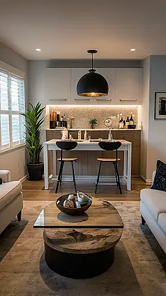 Ever feel like your room is the size of a postage stamp? Don’t stress! This picture shows how you can make even the smallest space feel super fancy. Check out how they used cool lights and wall decorations to make the room seem bigger and brighter. It’s like a magic trick for your apartment!