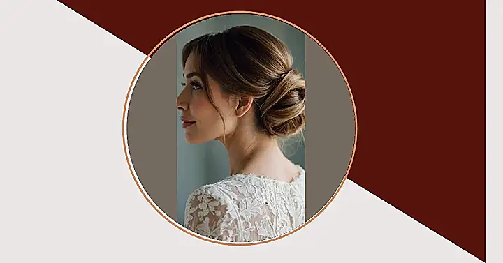 This hairstyle is like a fancy, elegant bun that’s had a makeover! It’s a French twist, which basically means the hair is swirled and tucked up into a chic little updo. Imagine a ballerina’s bun, but way more stylish and perfect for a wedding. It’s so pretty, you might even forget you’re wearing a dress; all eyes will be on that amazing hair!
