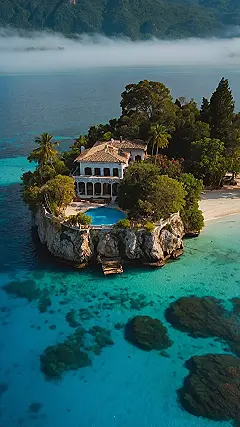 This picture looks like it was ripped straight out of a dream! It’s like a magical place where you can escape the hustle and bustle of everyday life. Imagine waking up to that view every morning! You’d have your own private beach, a sparkling pool to take a dip in, and a little house perched on a cliff overlooking the ocean. It’s the perfect spot to just relax and unwind.