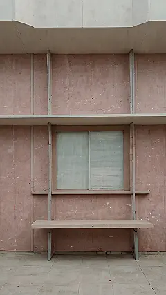 This picture is giving major “waiting for my fairytale prince” vibes, but instead of a glass slipper, we have a seriously stylish concrete bench! It’s like the princess’s super-minimalist palace—all dusty rose and clean lines. Forget sparkly castles, this is where *real* princesses chill. Imagine her scrolling through her phone, totally ignoring the potential suitors who might be awkwardly trying to catch her eye from across the way.