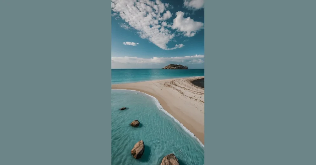 Imagine ditching your homework for this view! This photo totally screams “nature paradise,” doesn’t it? It’s like someone took all the best parts of a tropical island and crammed them into one super-amazing shot. You’ve got the crystal-clear water that’s practically begging you to jump in, the sandy beach perfect for building epic sandcastles (or just napping), and even a tiny island getaway in the distance.