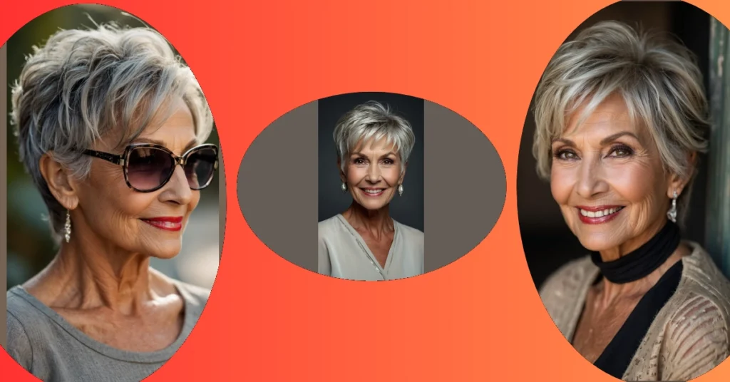 This lady’s got a hairstyle that’s just as bold and confident as she is! Her short, choppy cut with those wispy layers is seriously rocking the silver. It’s like she’s saying, “Hey world, I’m embracing my age and loving every minute of it!” Her hair is totally on-trend, and it’s making her look absolutely fabulous.