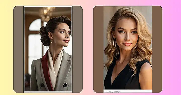 This hairstyle is seriously elegant! It’s like a perfect blend of old Hollywood glamour and modern chic. Imagine yourself at a fancy party – this medium-length, wavy look would totally make heads turn. It’s got that classic vibe, but it’s not too stuffy; it’s easy-going enough for everyday wear too, if you’re feeling extra fancy. Seriously, it makes this model look like she’s ready to accept an award for “Most Stunning Hair Ever.”