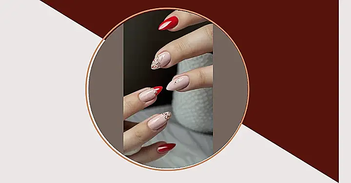 These nails are totally festive! Imagine showing up to your holiday party with these beauties. They’re like a mini Christmas tree on your fingertips – but way less prickly. The combo of elegant nudes and classic red is so chic, it’s practically whispering “Merry Christmas!” while secretly showing off that you have amazing taste. Who needs a sparkly sweater when you’ve got this much glam going on?
