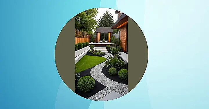 This garden looks so zen, it’s like a spa day for your eyeballs! Seriously, who wouldn’t want to chill in that little shed-slash-guest-house at the back? The super neat design with the pebble path, perfect lawn, and plants that look like they’re attending military school has me wondering if the homeowner’s superpower is taming unruly shrubs. It’s so creative, it makes me want to get off my phone and maybe…just maybe… pull a weed or two.