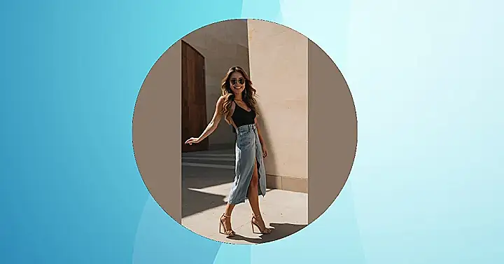 This outfit screams “I’m ready for fall, but still wanna feel the summer sunshine!” The denim skirt is the perfect way to transition from hot days to cooler nights. It’s super comfy, but the high slit adds a touch of sass that makes you feel like you’re strutting down a runway, even if you’re just heading to school. And those heels? They’re like the cherry on top of a delicious fall sundae, adding a little extra pizzazz to your look.