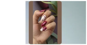 These nails are totally giving us autumn vibes! The deep red color is perfect for the cozy season, and the black and gold accents add a touch of sophistication. It’s like the nail equivalent of your favorite pumpkin spice latte, but way less messy!