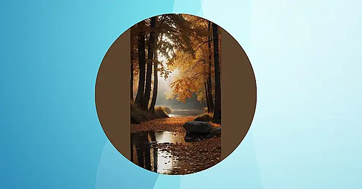 The image shows a peaceful autumn scene with a pond reflecting the colors of the season. The trees stand tall, their leaves in shades of yellow and orange, looking like they’ve been dipped in liquid sunshine! It’s like nature’s own art gallery, with the leaves falling into the water like colorful paintbrush strokes. It’s so calm and quiet, you can almost hear the whispers of the wind rustling through the trees.