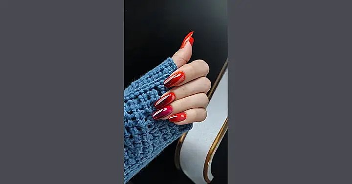 These nails are seriously giving us autumn vibes! They’re like a sunset on your fingertips. The bright oranges and reds are perfect for the changing leaves and the cool crisp air. We love how the nail artist even added a little tree on one nail, like a tiny reminder that nature is beautiful no matter the season.