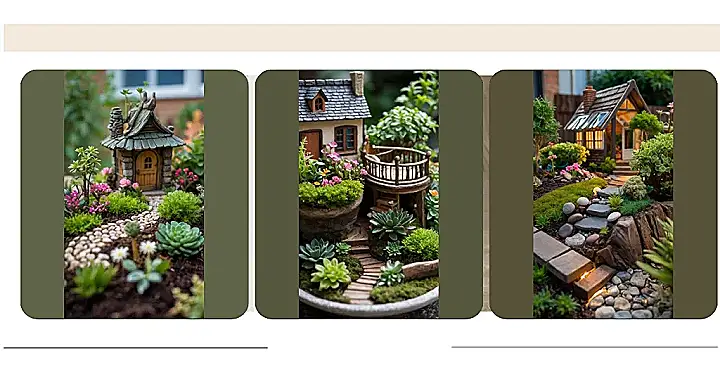 This miniature garden design is seriously adorable! Imagine living in a teeny-tiny house with a balcony, surrounded by lush green plants and cute little flowers. Itโs like a fairy tale come true, all packed into a little pot. You could almost picture tiny gnomes sipping tea on that charming little deck, right? It’s the perfect blend of whimsy and nature, proving that big things can come in small packages โ or, in this case, tiny pots!