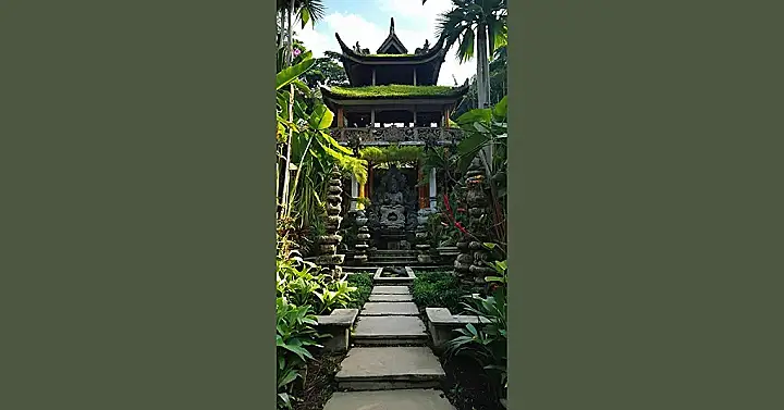 In this tranquil oasis, soothing sounds of cascading waterfalls echo through the garden, adding a melodic backdrop to your peaceful exploration. Imagine discovering hidden nooks adorned with intricately carved Balinese statues, each telling a story of ancient traditions and cultural richness. Lush ferns and vibrant orchids peek out from every corner, inviting you to pause, breathe in the intoxicating scents, and revel in the sheer beauty of this tropical haven that transcends time and place.