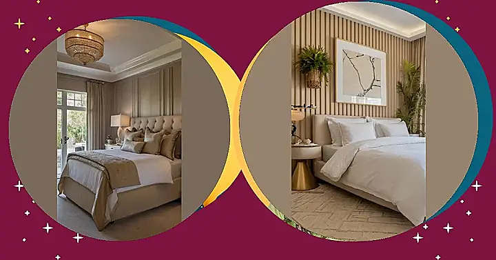 The rest of the room continues the neutral theme; the bed looks as comfortable as a cloud made of marshmallows, and even the throw blanket has embraced its beige destiny. The entire room is a masterclass in not trying too hard. The mirror looks like a cool explosion of sunshine. Honestly, this is the kind of space where you can drop your phone, pick it up the next day and still be totally blissed out.