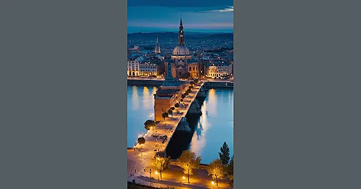 The bridge seems to be a secret passageway to a magical land, leading you to a majestic church with a towering spire that almost touches the sky. This beautiful city, nestled in the heart of Europe, is waiting to be explored! Maybe there are even hidden treasure chests buried under those cobblestones… who knows? But one thing’s for sure, this place is definitely a must-see!