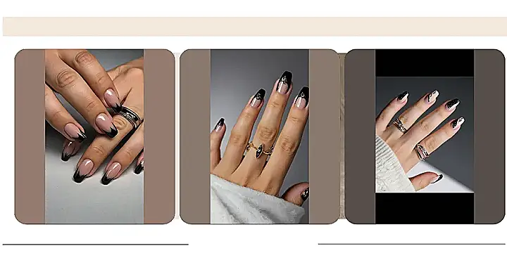 It’s like someone took the classic French manicure and gave it a total goth makeover, but in a cool, artsy way. Imagine how awesome these would look paired with your favorite black hoodie and some chunky boots. Plus, black goes with literally everything, so you can rock these nails no matter what you’re wearing. You’ll be the queen of dark glam in no time!