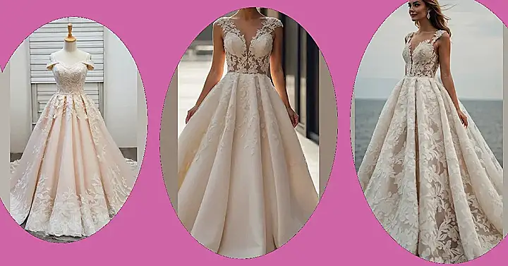 Imagine showing up to your wedding in this dreamy dress! It’s blush-colored, which is like a super-soft pink, and it’s totally perfect if you’re not into the whole stark white thing. Plus, with all that lace, you’ll feel like you stepped straight out of a fairytale, ready to dance the night away with your Prince Charming (or Princess Charming, whatever floats your boat!).