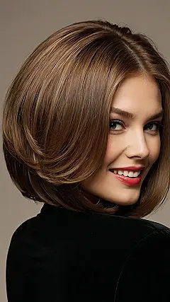 Seriously, check out those layers! They’re not too much, not too little—just the right amount to add some bounce and movement. This bob isn’t just a haircut, it’s a vibe. It says, “I’m confident, I’m stylish, and I know how to rock a great hairstyle.” Plus, it looks super easy to style – less time fussing with your hair, more time doing the things you actually want to do! Who wouldn’t want that?