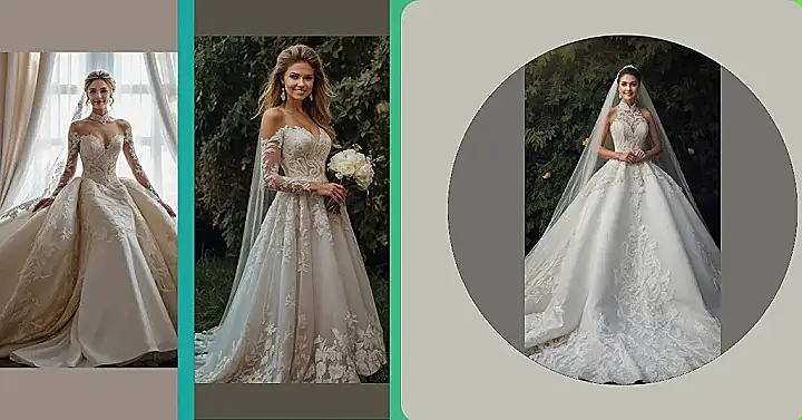 Plus, can we talk about the lace? It’s like someone went crazy with a fancy doily and turned it into a masterpiece! Who needs a ton of sparkly jewelry when you have sleeves like that? Just imagine all the awesome wedding pics you could take while rocking this gorgeous dress – total Instagram gold, right?
