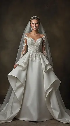 Creating a bridal dress like this isn’t just picking out white fabric. It’s like being a textile architect! The fashion design brains behind it had to figure out how to make it look stunning, hold its shape with all those ruffles, and maybe even have a hidden pocket for snacks (a girl can dream). It’s a whole world of choosing the perfect sparkle, stitching lace that looks like magic, and making sure the veil floats just right. Basically, it’s wearable art that probably required a team of design wizards and a whole lot of coffee.