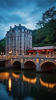 This beautiful bridge, with its twinkling lights, looks like it could be straight out of a fairytale! It’s all decked out with sparkly bulbs, like a giant Christmas tree. The reflection in the water makes it look like the bridge is floating on the surface, which is super cool. I bet it would be amazing to walk across at night and see all the lights, especially if you’re with a friend.