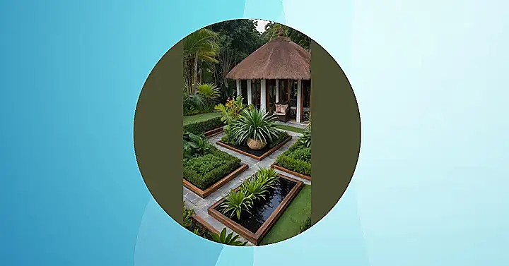 This isn’t your grandma’s garden—unless your grandma is a super-cool, plant-loving adventurer! Just look at this amazing tropical garden design. It’s like stepping into a lush, mini-rainforest, complete with its own fancy thatch-roofed gazebo. Imagine chilling out there with a good book and a refreshing drink, surrounded by all these gorgeous green plants. It’s the kind of place where you’d totally forget about homework (just maybe not *forever*).