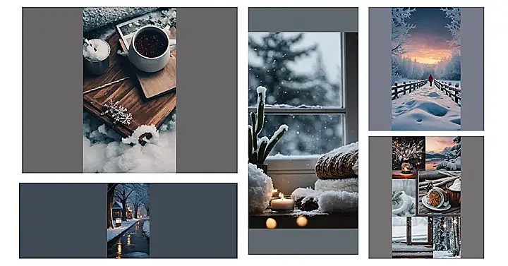 This collage is like a cozy winter dream! From a snowy forest scene to a warm and inviting lantern, each photo is perfect for anyone who loves the winter season. Imagine snuggling up with a cup of hot chocolate (or maybe a big bowl of whipped cream!) while gazing at these beautiful images. They’re like little pieces of winter magic, ready to brighten up your screen!