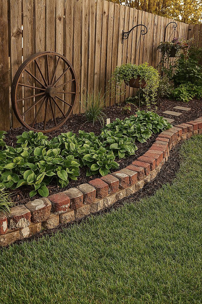 Create your dream exterior retreat with charming small garden landscape ideas, featuring a cozy corner garden bed bordered by rustic bricks. This backyard garden design is perfect for adding a touch of charm.