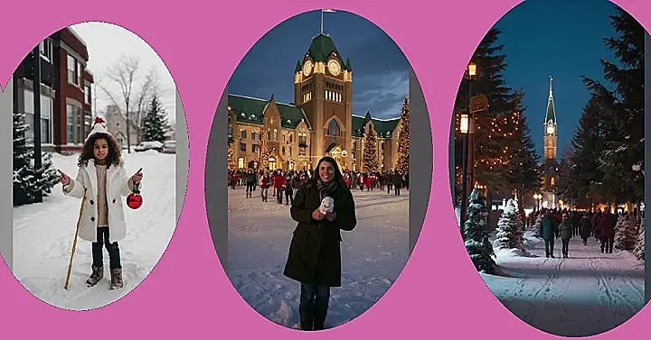 Imagine strolling down a Canadian street, the air nippy but cozy, with twinkling lights strung across snow-covered buildings like a sparkly necklace. A giant Christmas tree, brighter than a candy cane, stands proudly in the center, casting a magical glow on everything. It’s like a postcard come to life, only better because you’re actually there, maybe even with hot chocolate in hand, watching kids bundled up in their winter gear, their breath puffing out in little white clouds as they excitedly head towards Christmas festivities. It’s pure Christmas magic, Canadian style!