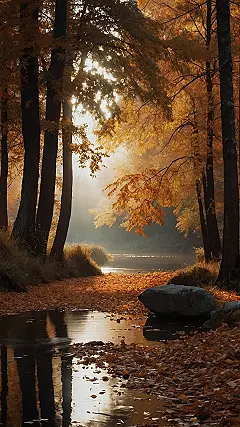 This picture is like a scene straight out of a fairytale, with the golden leaves of autumn covering the ground like a crunchy carpet. You can almost feel the crisp air and hear the crunch of leaves beneath your feet. The sun peeks through the branches, creating a warm glow that makes the whole picture feel cozy and inviting. It’s like autumn is taking a moment to show off all its best colors before winter comes along and steals the show.