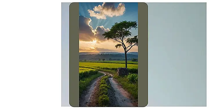 This photo is like a postcard from a fairytale! Imagine strolling down that dusty path, the sun painting the sky with gorgeous colors, and a field of bright yellow flowers stretching out as far as you can see. It’s the kind of scene where you’d expect a friendly gnome to pop out from behind a bush and offer you some magically delicious berries. It perfectly captures the beauty of nature, the charm of a quiet village, and the whole vibe of a ‘beautiful villages nature photo’, especially with the sun’s rays acting like spotlights on this idyllic landscape.