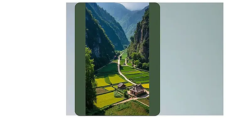 This photo is so pretty, it looks like a computer screensaver from the year 3000! Seriously, those rice paddies are so green and the mountains are towering over everything like giant, leafy bodyguards. I wonder if they ever get tired of watching over the village? Maybe they secretly wish they could swap places with the little houses and just chill in the sunshine.