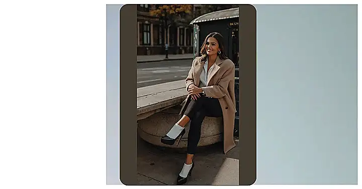 **Paragraph 1:** Hey there, fashion fans! November’s got that chilly vibe, but that doesn’t mean your style has to hibernate! Check out this picture – our model is rocking a seriously stylish casual look perfect for those crisp autumn days. That camel-colored coat? Total cozy goals! It’s like a warm hug for your outfit. Paired with sleek black pants and those super-cute two-toned shoes, she’s nailed the perfect balance of comfort and chic. Forget bulky sweaters; this look proves you can stay warm AND look amazing.