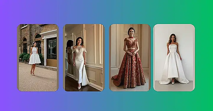 Check out this bridal outfit! It’s like a princess dress, but with, wait for it…POCKETS! Can you imagine having a secret stash of snacks or your phone ready for emergency selfies on your big day? The dress is super classy with its clean design, but those pockets add a level of practicality we can totally get behind.