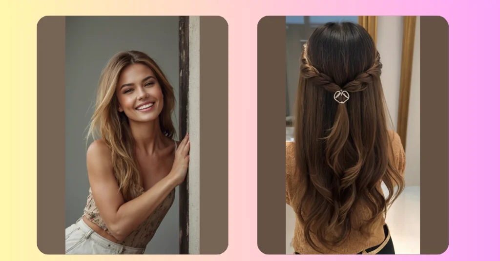 Seriously, who knew a simple half-updo could look this chic? It’s the perfect balance of effortless cool and polished pretty. This isn’t your grandma’s hairstyle—it’s modern, it’s stylish, and it’s totally Instagrammable. Plus, it looks super comfy—perfect for a day of classes, a fun night out, or even just chilling at home and binge-watching your favorite shows.