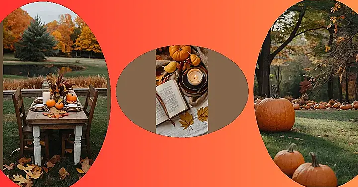 The image is like a warm hug on a chilly autumn day! There’s a pumpkin, a couple of gourds, and some fallen leaves ‚Äì the perfect trio to set the mood for cozy nights. And just look at that book! It’s open, inviting you to curl up on the couch with a cup of hot chocolate and lose yourself in a story.
