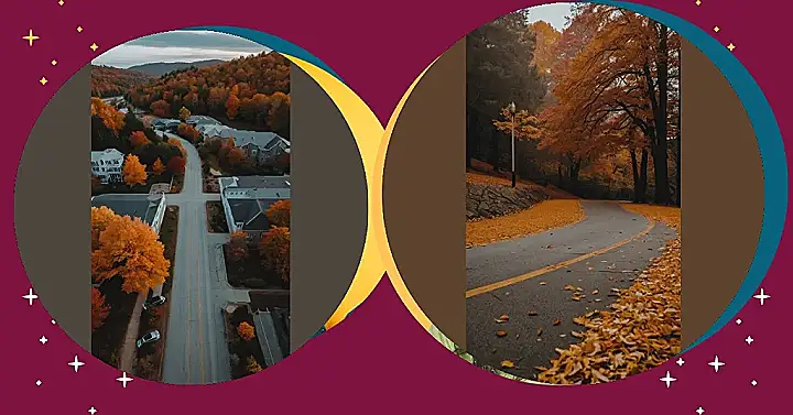 This picture looks like a scene straight out of a cozy autumn movie! The trees are all dressed up in their finest fall foliage, the houses are tucked away in a neat little neighborhood, and the quiet street is perfect for a long, slow walk. It’s the kind of place where you could imagine the air smelling like pumpkin spice lattes and freshly fallen leaves. I bet there’s even a little pumpkin patch somewhere nearby!