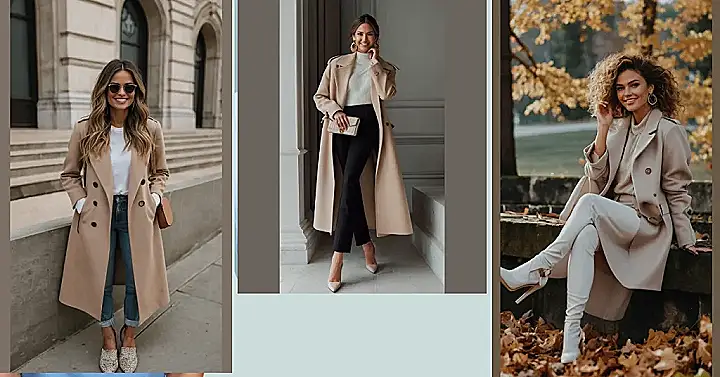 Hey there, fashion friends! November’s got that chilly vibe, but that doesn’t mean your style has to hibernate! This picture shows a super stylish outfit perfect for those cool autumn days. Imagine strolling down the street, feeling all warm and snug in that gorgeous camel-colored coat, while still looking totally put-together. It’s like a hug for your body and a boost for your confidence. Think cozy, but make it fashion! That cream-colored pantsuit underneath is the secret weapon – it’s effortlessly chic and comfy enough to wear all day long. Who needs sweatpants when you’ve got this?