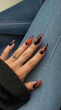 These acrylic nails are seriously fire! They look like a fiery sunset, with a mix of black and orange. Imagine walking down the hallway with these bad boys, feeling like a total rockstar. They’re definitely going to turn heads. Maybe you’ll even have some classmates asking where they can get their own hot nails.
