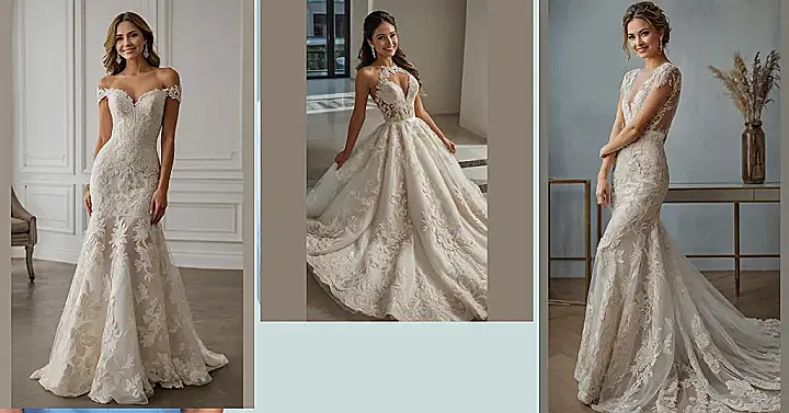 These bridal dresses are seriously dreamy! From the princess-like fluffiness of the first one, to the sleek and sophisticated style of the others, there’s a perfect “aesthetic” (fancy word for style vibe) for every bride. Imagine twirling down a staircase in that first dress—you’d look like you’re floating on a cloud! And the detail on those lacey numbers? Seriously impressive! It’s like someone sprinkled tiny flowers all over the dress. They are all seriously stunning.
