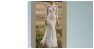 This dress is seriously stunning! It’s like a fairytale come to life – all lace and elegant curves. Imagine yourself walking down the aisle in this “sheath silhouette wedding dress,” feeling like a total princess without the whole “waiting for a prince” thing. It’s got that gorgeous mermaid shape, but with a modern, sophisticated twist. It’s like the perfect blend of classic romance and a “wow, I’m fabulous” confidence boost. This dress would make even a grumpy nine-year-old smile!