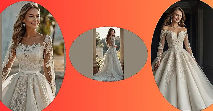 Looking at this amazing ivory wedding dress, you can practically hear the “oohs” and “aahs.” Seriously, that lace looks like it was hand-stitched by little fairies who specialize in making fabric look like frosted spiderwebs – in the best way possible, of course! The long sleeves add a touch of elegance, perfect for a fancy event, and the full skirt probably makes you feel like you could float instead of walk down the aisle. Wearing something this beautiful in that perfect ivory shade probably feels like winning the fashion lottery.